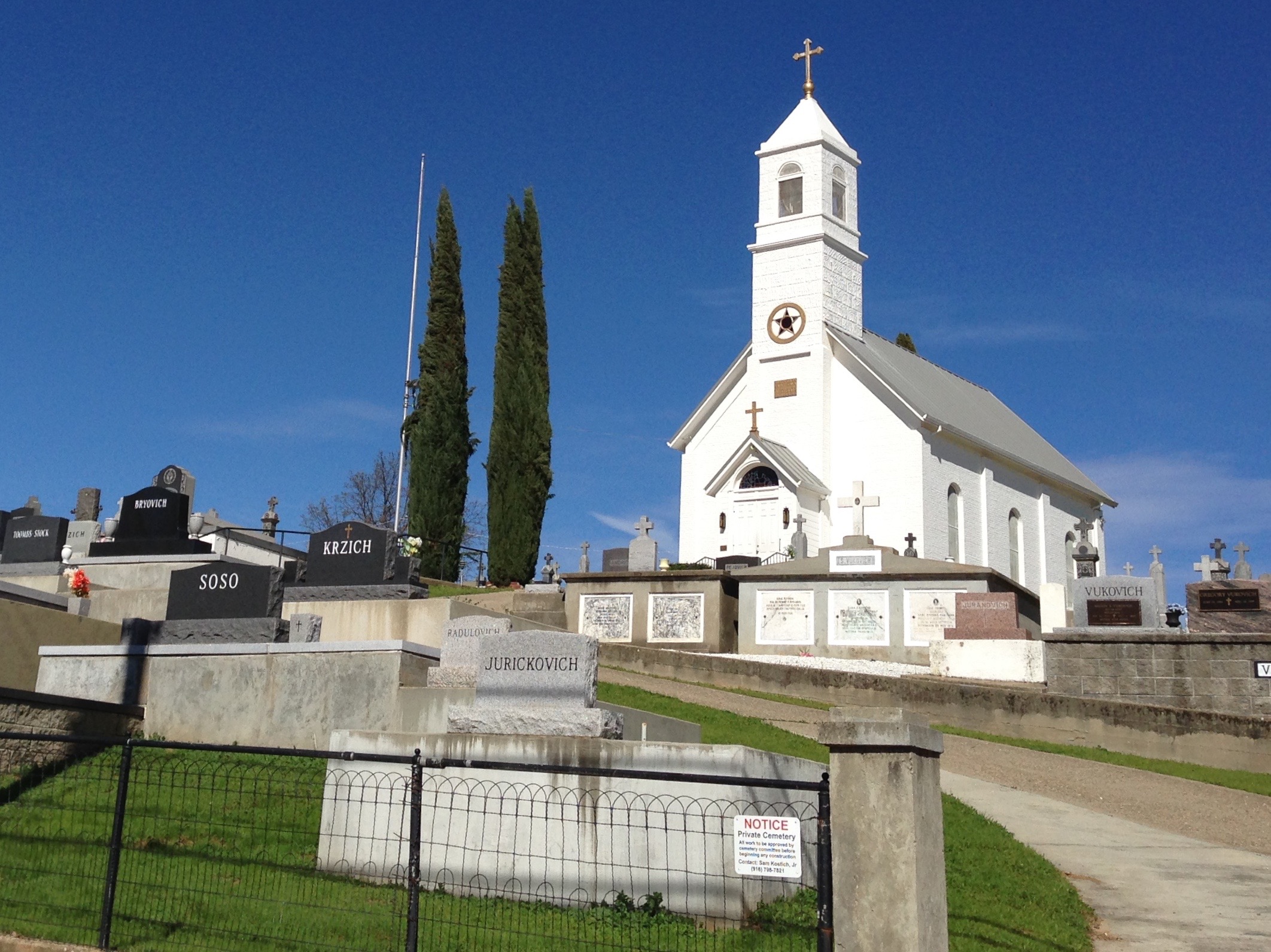 Our tour guide has been very involved in preserving data from the mine, including payroll records, and was a wealth of information. I won’t bore you with all the details, because you really need to see it to appreciate it. However, the men went down the same shaft that the gold ore went up, over a dozen at a time in and on top of the lift, because their pay didn’t start till they were at the job site underground. They had a team of mules that lived their lives underground, eventually going blind, hauling mine trains to the shaft. Many of the miners came from Serbia, Ireland, and Mexico. The Serbian miners built a church, that in 1894 became the first consecrated Serbian Orthodox Church in the western hemisphere. The church is still in use to this day.