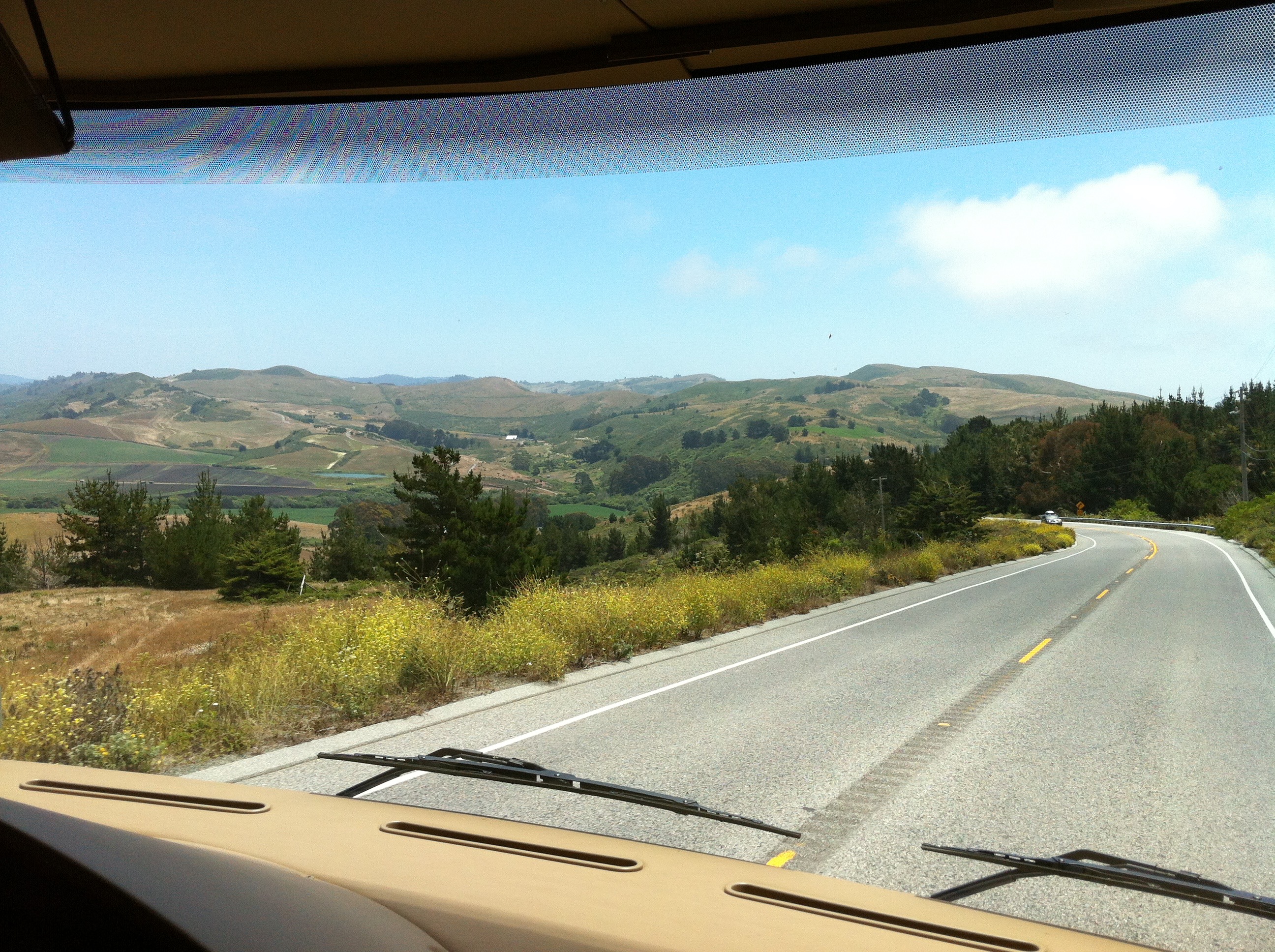 The coach drove great as we lumbered along at 50-55 mph. I’ll be interested in the mileage for the trip, as we went up and down hills a lot, and spent time in traffic in Santa Cruz.