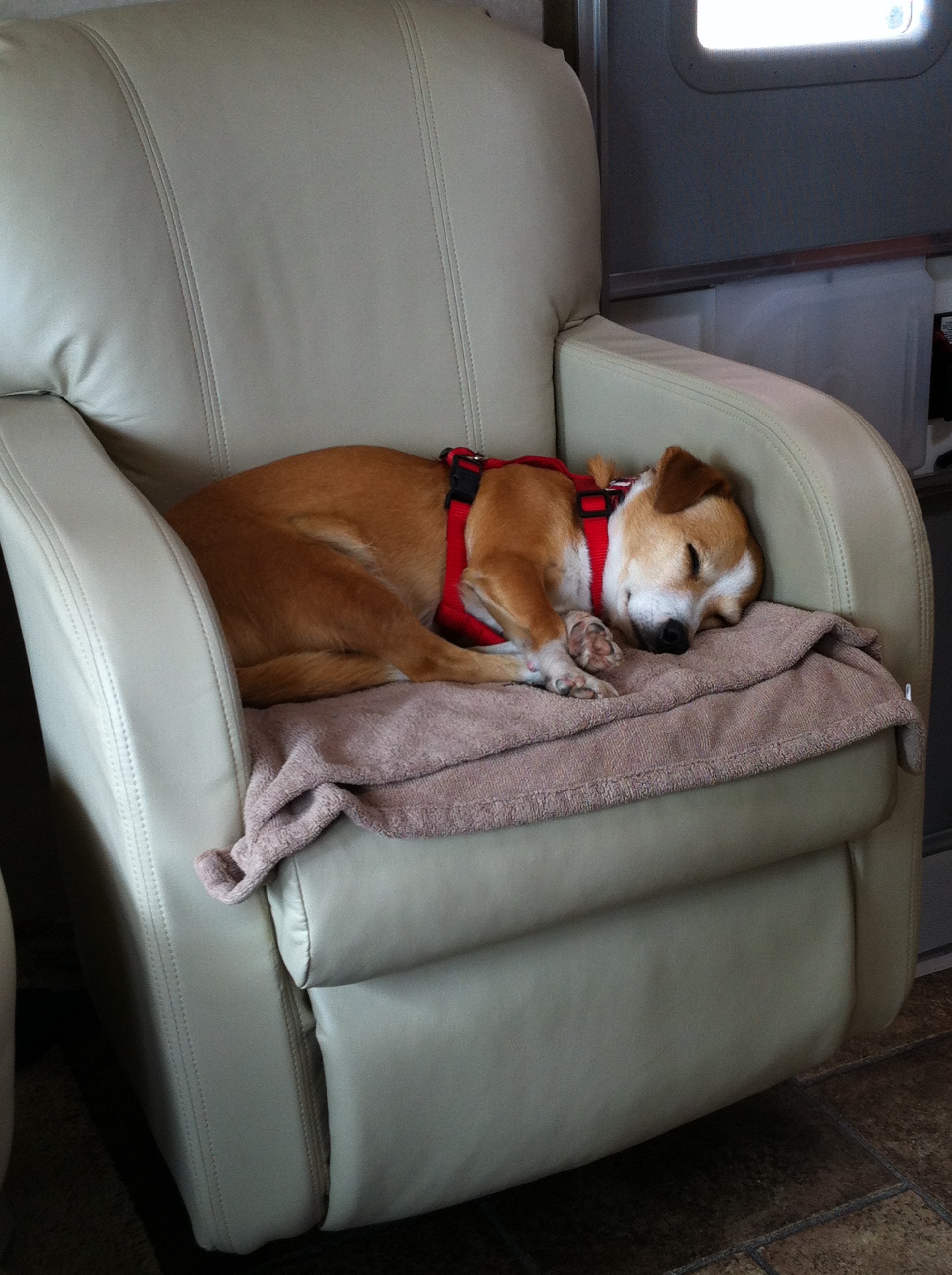 We left home about 10am…our first RV Trip in our new Winnebago Motorhome…even Charlie was excited about it!