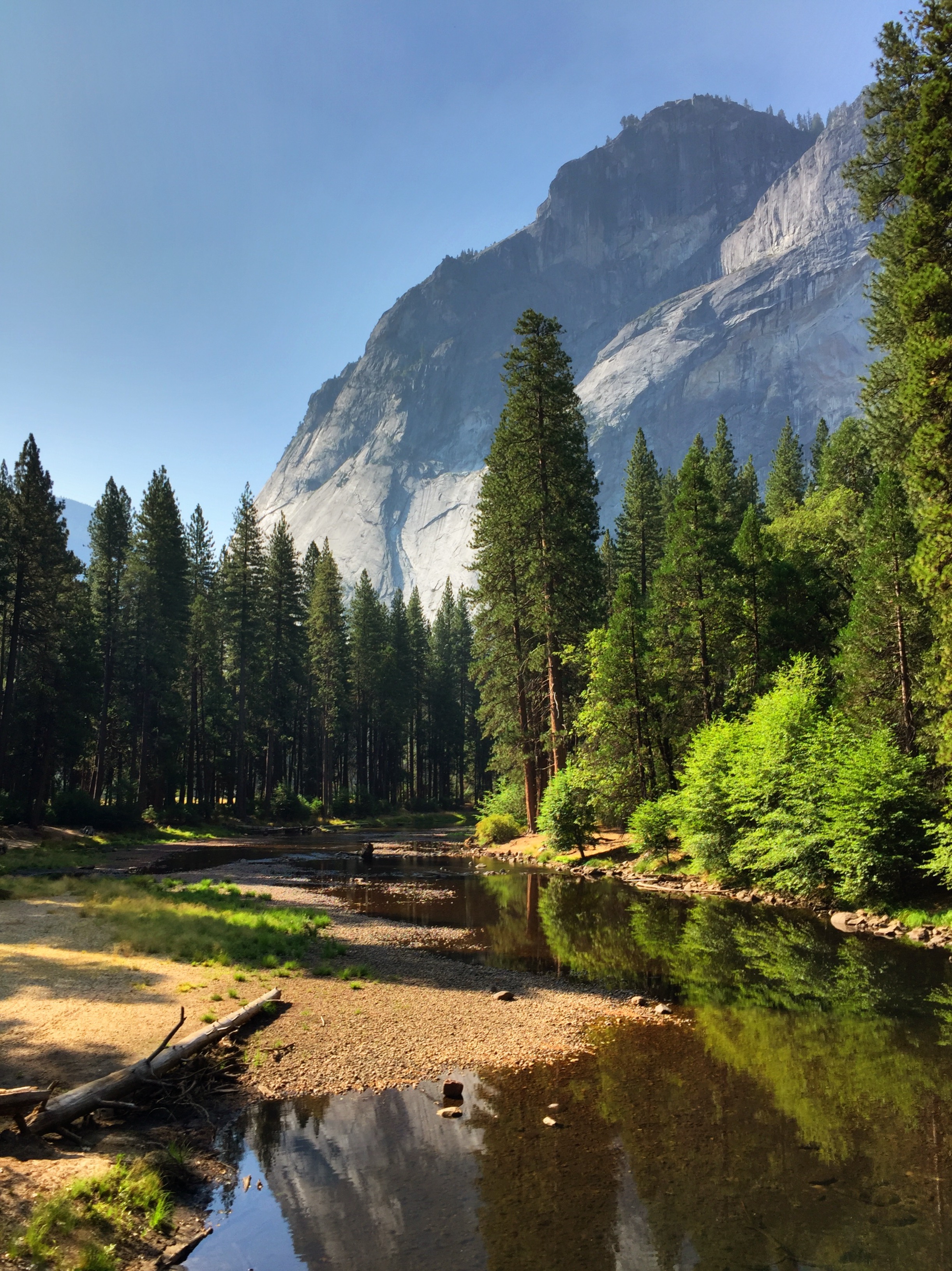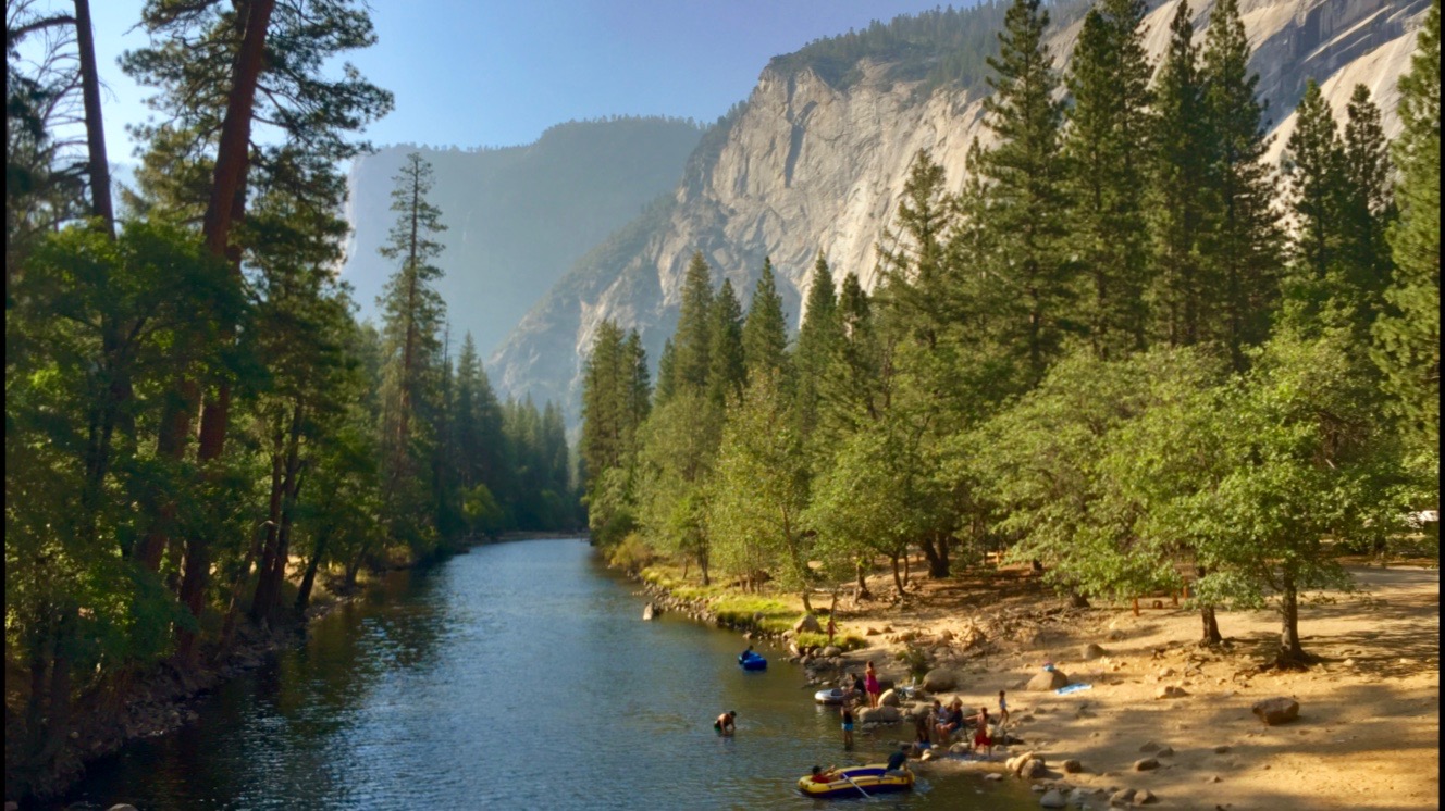 The Merced River flows through the valley all summer and several families were out enjoying the cool water during the day.