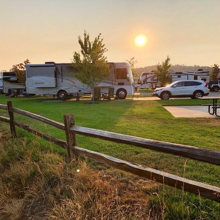 We don’t often stay at Casino’s but we really enjoy visiting here for a “chill” weekend. This is one of the best designed RV parks we have visited, with wide and grassy sites on a hill overlooking the valley. There is a great club house and pool and a walking trail all around the site, located just below the park.