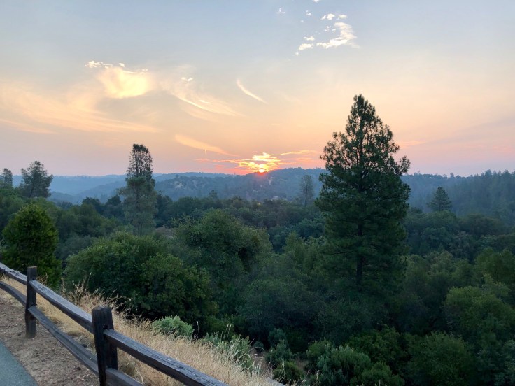 Here’s a photo from our morning walk just as the sun rose above the hills in the distance.