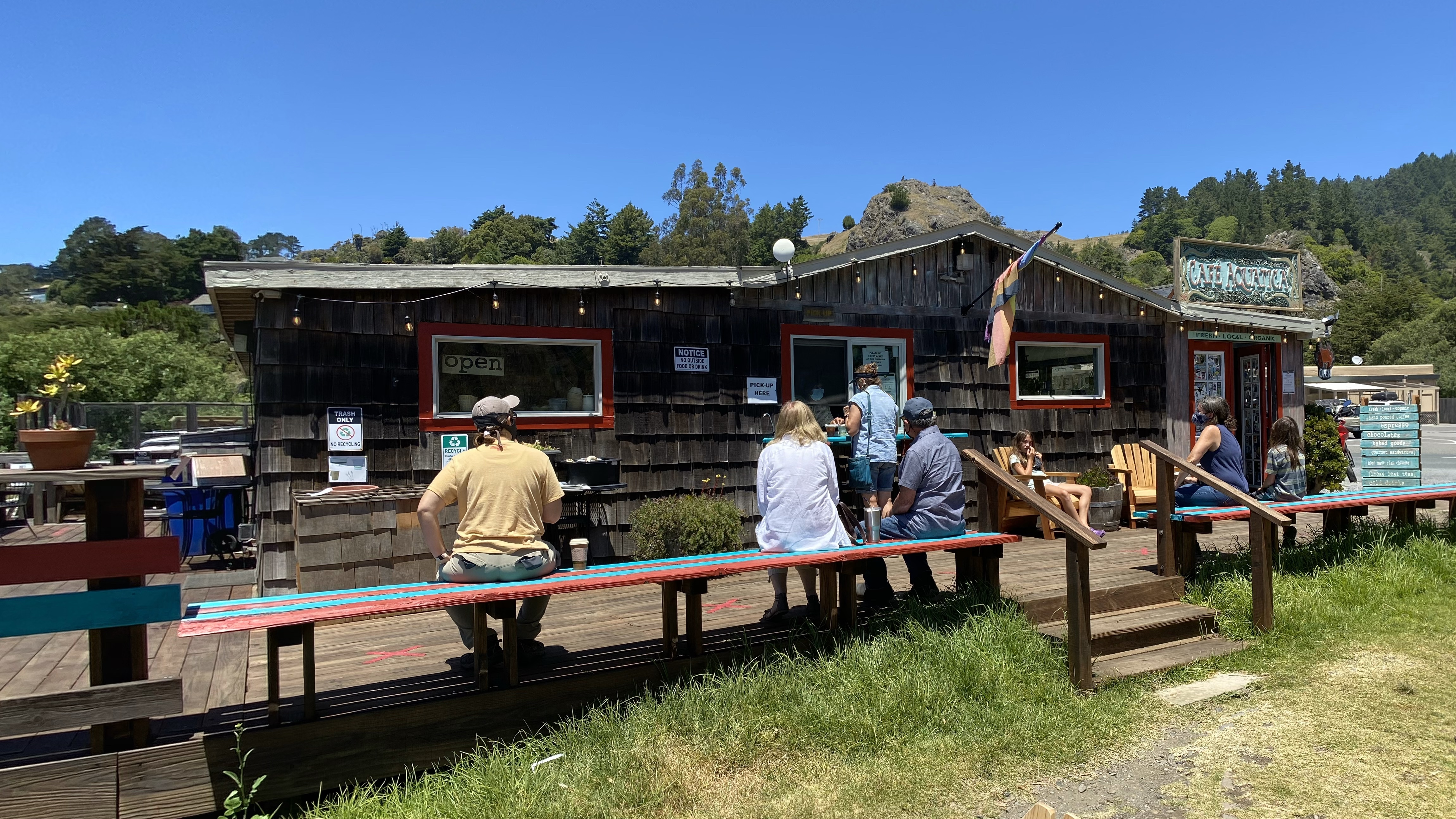 We started the day with coffee at Cafe Aquatica. Their coffee and food were great, and we lingered outside just taking in the great views of the Russian River as it meets the Pacific.