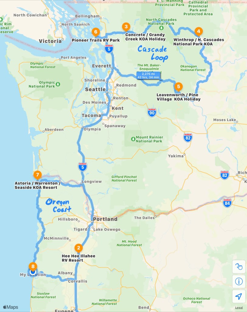 It was touch and go for a while, as COVID-19 cases started to spike in California, but the rules for traveling did not change and we made a beeline for the Cascade Loop in Washington, where we would camp with relatives for a few weeks before relaxing on the Oregon Coast.