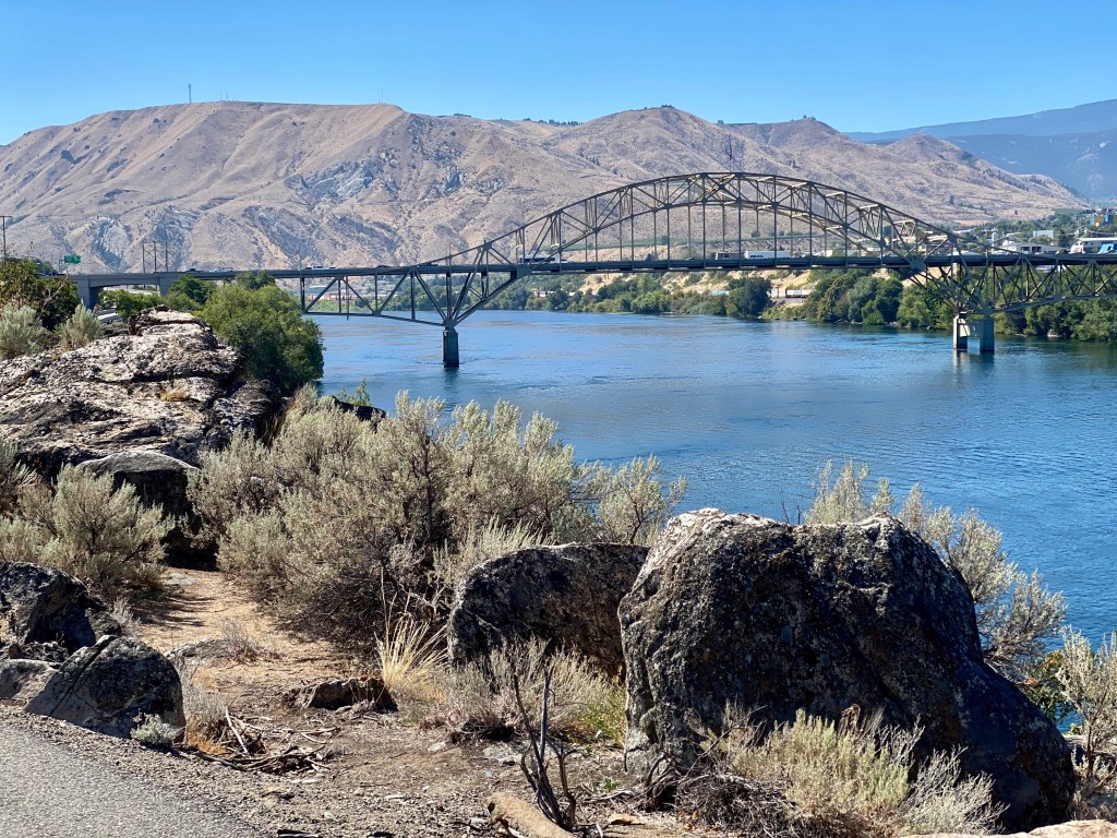 The Methow River finally empties into the mighty Columbia River, which you follow till you get to Wenatchee.