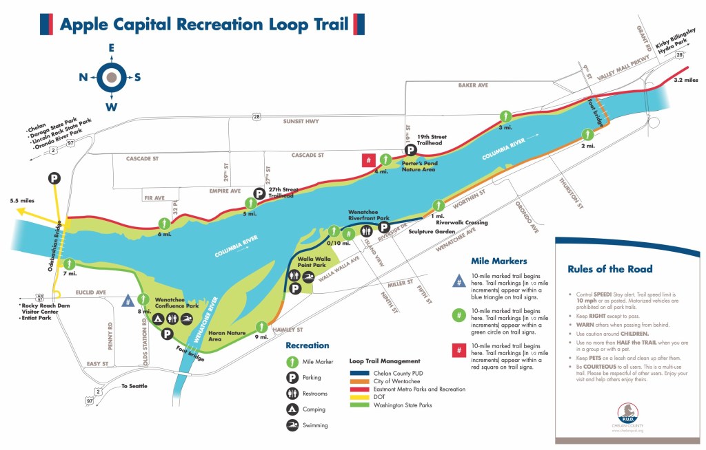 A great way to see Wenatchee is from the the Apple Capital Loop Trail, a 10 mile bike path that takes you along both sides of the Columbia River.