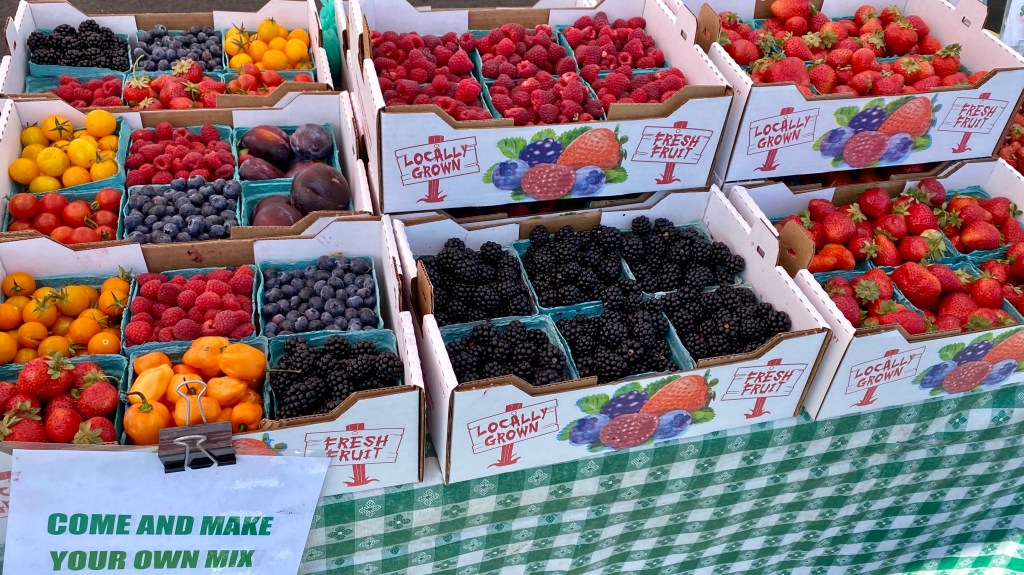 Every Saturday there is a farmers market. We picked up fresh fruits and vegetables, and some bread.