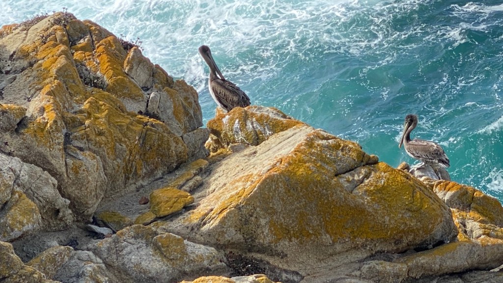 At the top, you pass some pelicans who have made their home on the cliff.