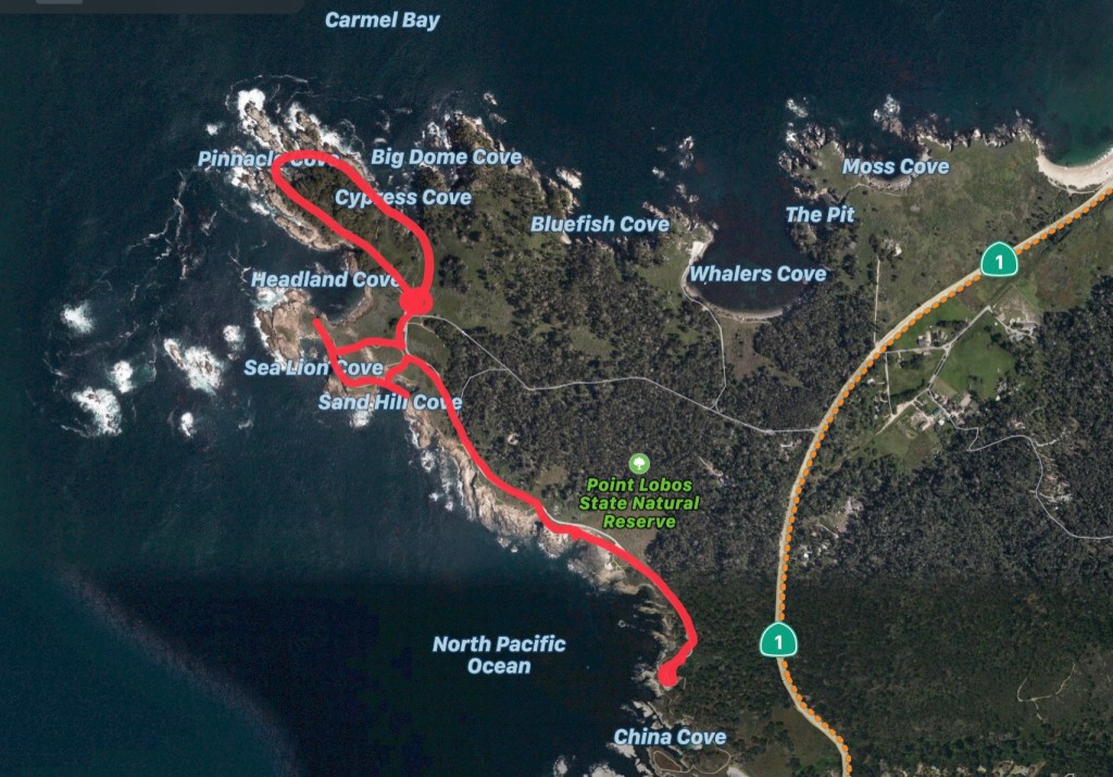 First we walked down the coast to China Cove, then we traced our steps back to the Cypress Grove Trail. The natural beauty is astounding.