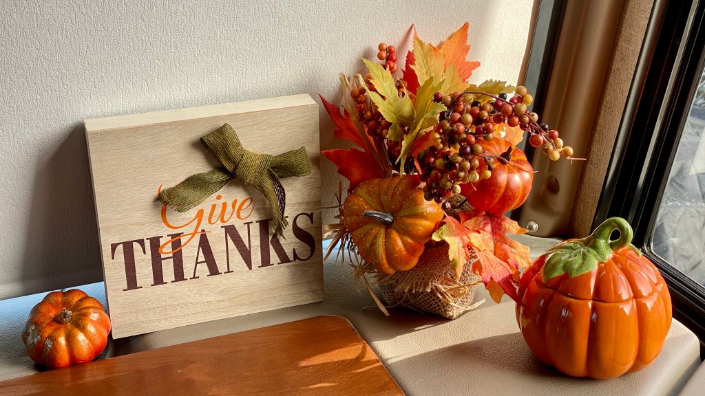 Before Thanksgiving, we squeezed a trip in to the coast, driving to the Monterey coast for a few days. Deb always adds great seasonal touches to the motorhome.