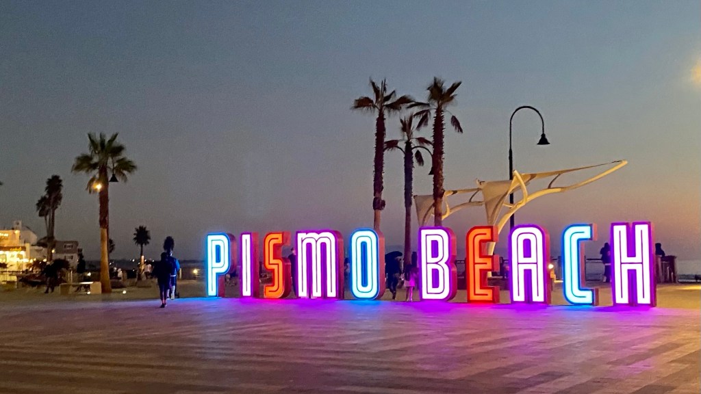 Pismo looks pretty good at night, too, with the sign all lit up against the sky.
