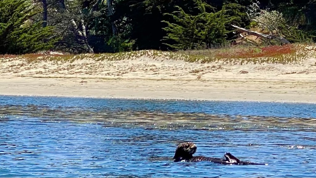 While we never kayak close to the otters, sometimes they seem curious about us as they swim by.