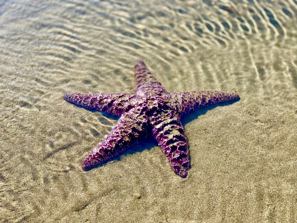 For this trip, since we were on our way to Washington and didn’t plan to stay very long, we spent more time on the beach. There was a very low tide and we were able to explore much further out than usual. Normally, like the map shows, we would be swimming rather than walking!