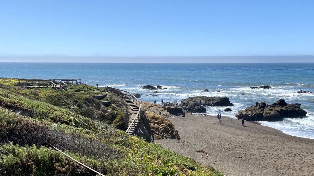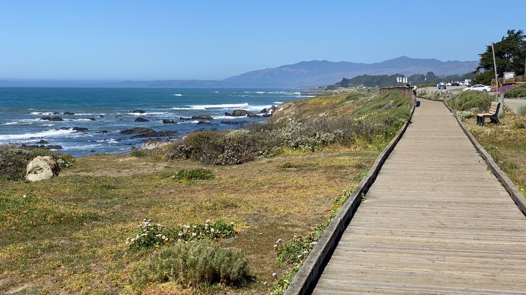 Then down the other side to Cambria and the coast. We love to eat lunch in Cambria (try Linn’s Easy As Pie Shop & Cafe) and then walk along the boardwalk that starts at Moon Stone Beach Park. It’s a great way to spend a day.