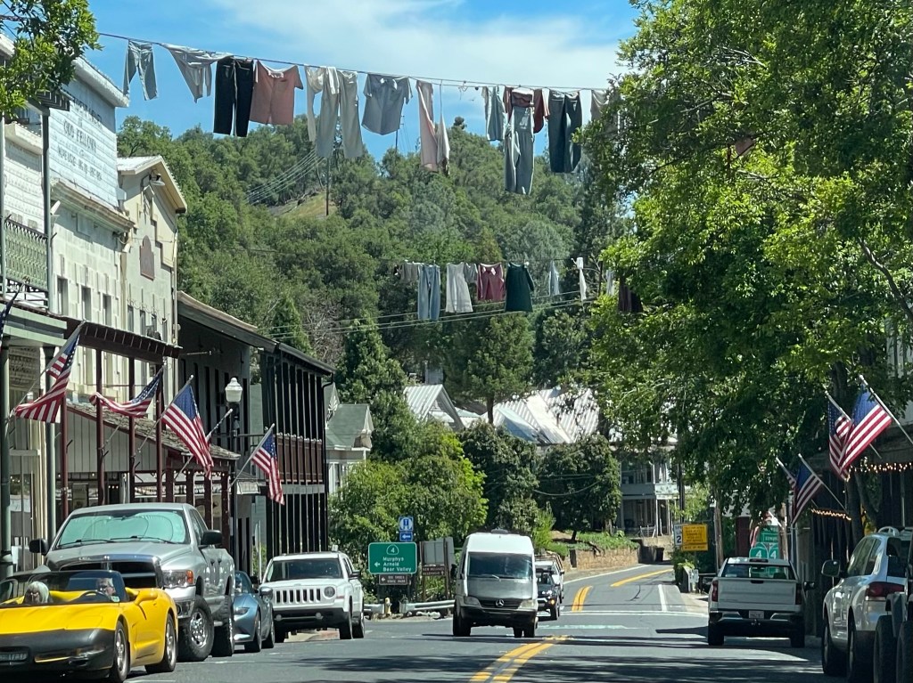 We missed the Calaveras County Fair & Jumping Frog Jubilee at Angels Camp, but we’ll have to come back sometime for that. The laundry hanging across the street is for a competition played during that week.
