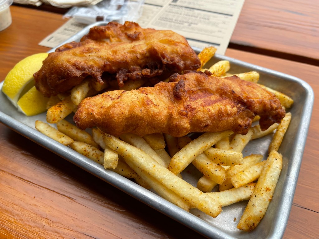 The Fort George Brewing and Public House had amazing fish and chips made from salmon. Probably my favorite fish and chips of all time.