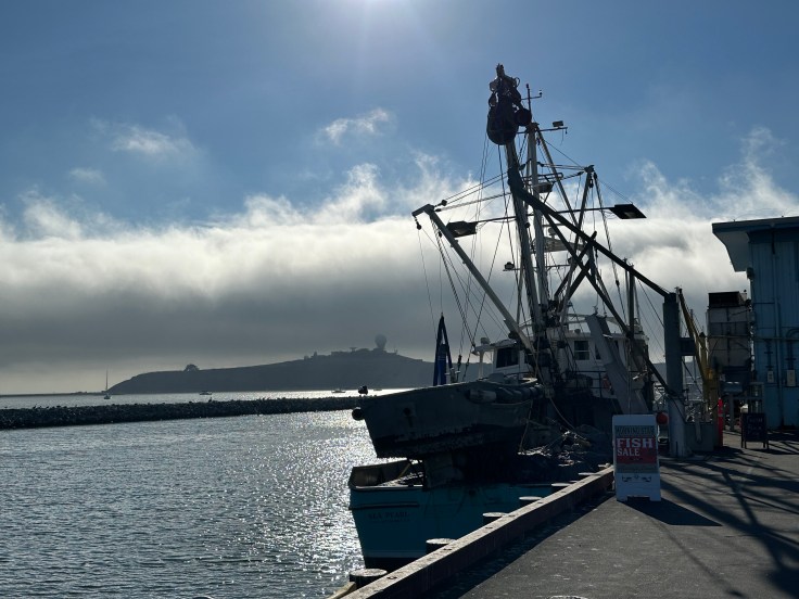 Here we are at the marina with Mavericks Beach in the background. Mavericks is where they hold the famous giant wave surfing competition. Obviously, not today!