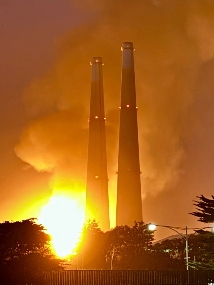 Unfortunately our trip was cut short by a man-made disaster. While at our RV, just after dinner, the park manager came by to let us know there was a fire at the power plant and a shelter in place order was in effect. I said thanks, but he said I really needed to step outside and see it for my self. This is what I saw at the power plant just on the other side of Highway 1!
