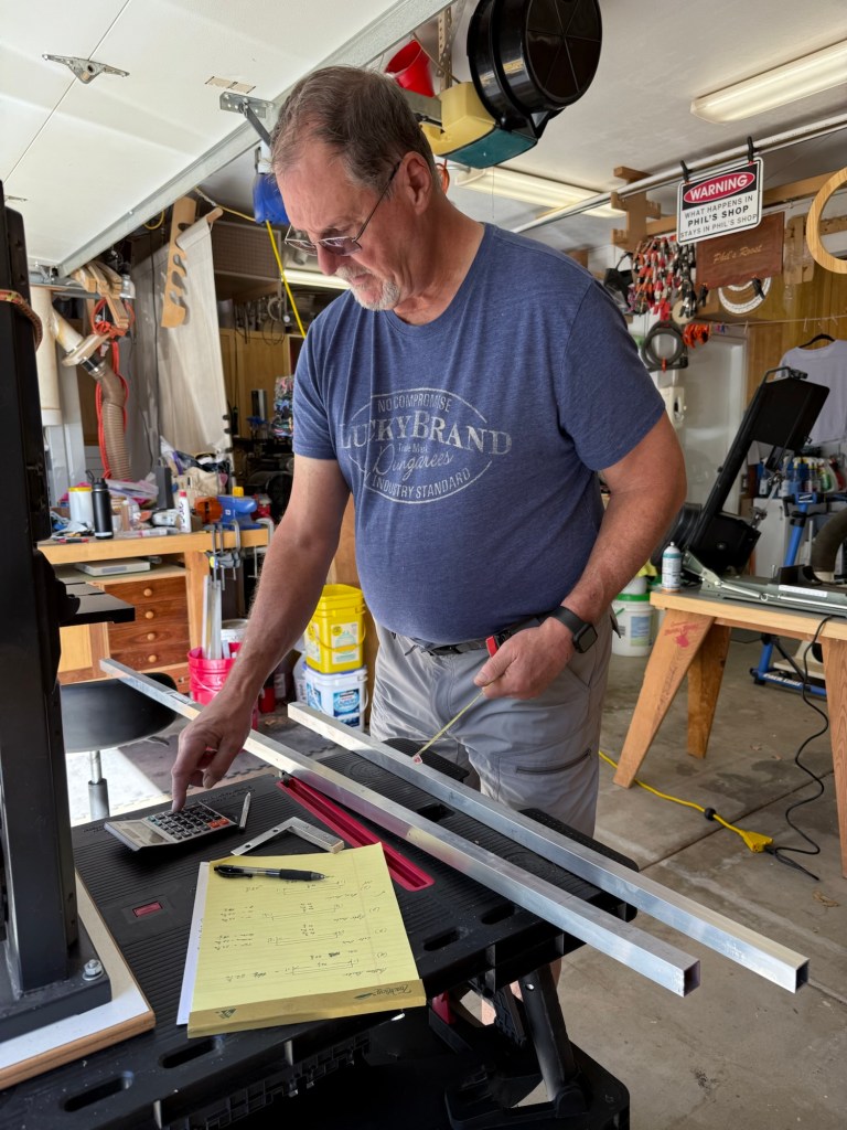 The first step was to carefully measure the compartment, as he would be cutting aluminum tubes in San Diego while I’d be drilling holes in the Bay Area. We used a shop drawing to complete this part.