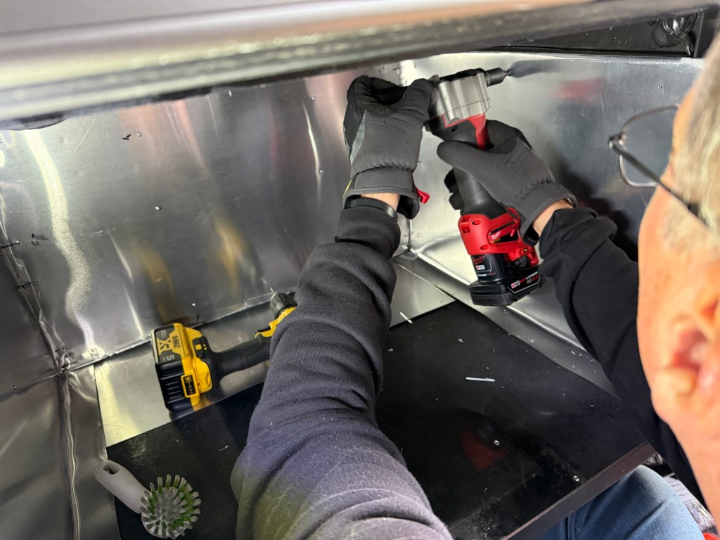 Next, aluminum sheeting was cut to size and bent into place. We needed 2 24”x48” sheets to complete the project.