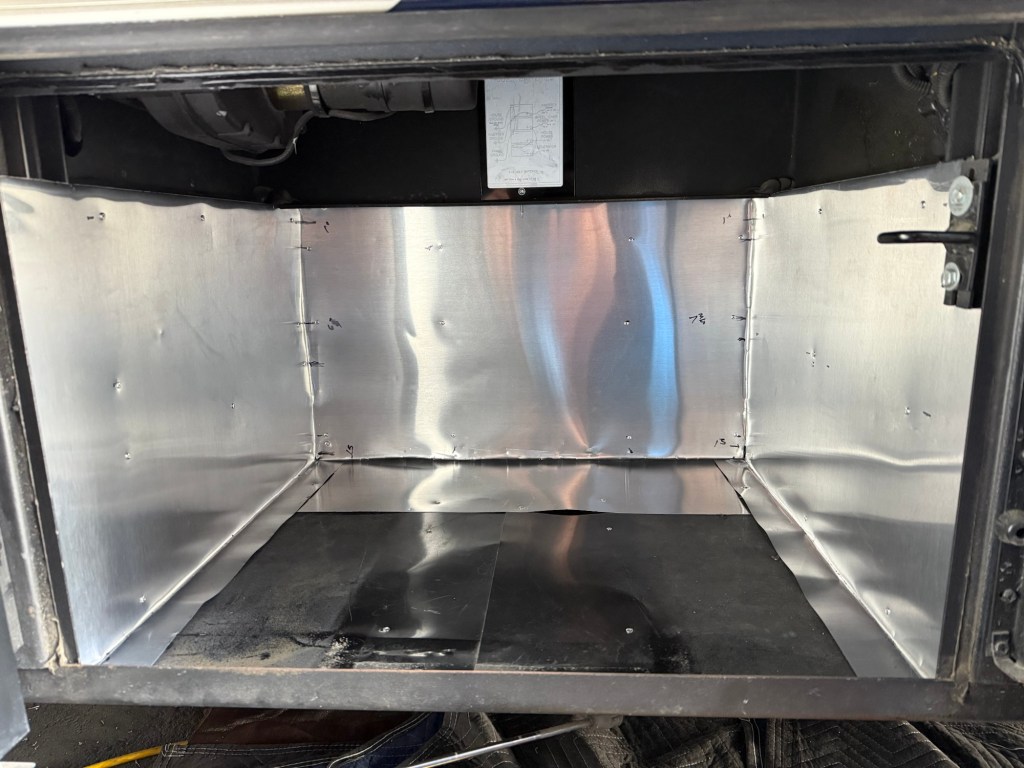 At this point, the exterior of the compartment and interior joints were sprayed liberally with Flex Seal to keep water and grime from entering the bay while on the road.