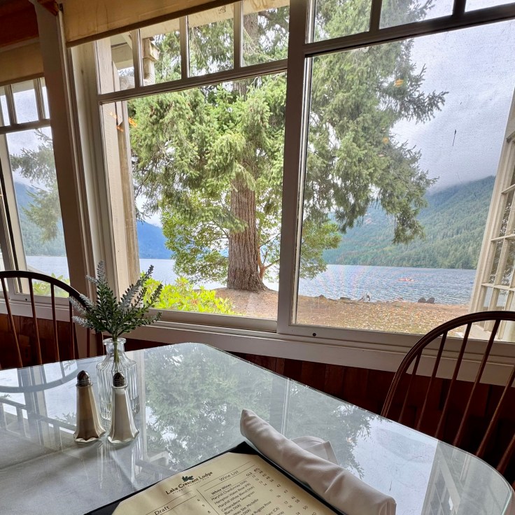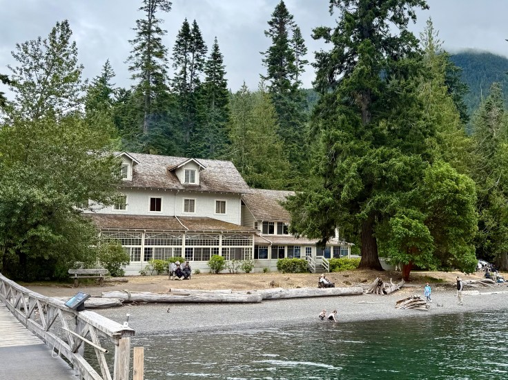 It’s the perfect setting for the Lake Crescent Lodge. It was built in 1915, before the road, so construction material was delivered by barge.