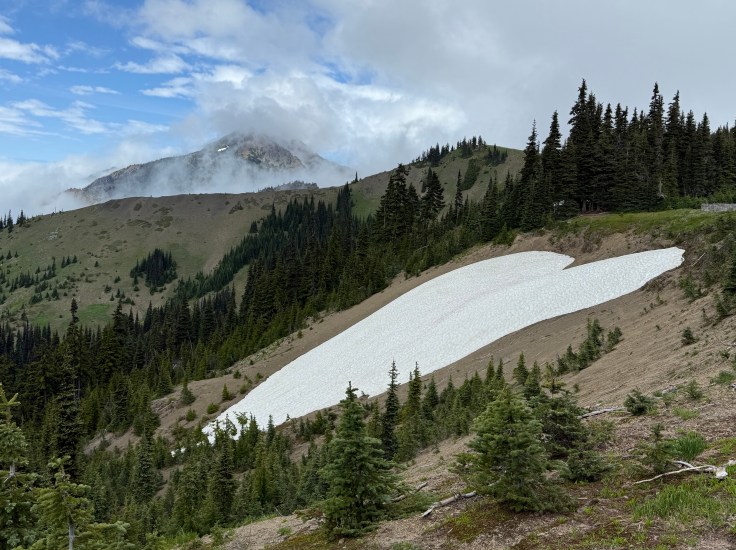 We walked the trails in the area and loved all the incredible views. The mountain seemed to say “right back at ya” when we saw this snow field in the shape of a heart.