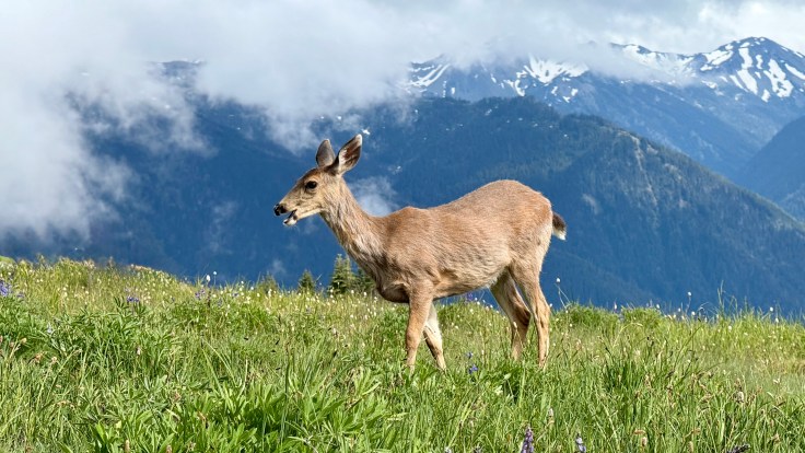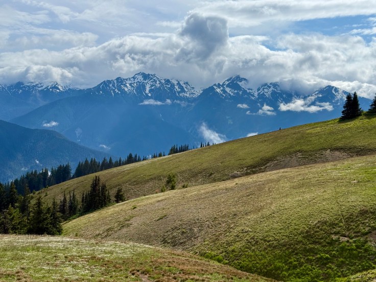 Our first stop was to the Olympic National Park Visitor Center. It usually pays off to do this. We thought it was too overcast to make it worth driving up to Hurricane Ridge. However, the Ranger looked at a cam setup on the ridge and said if we left right away we’d have a great view.