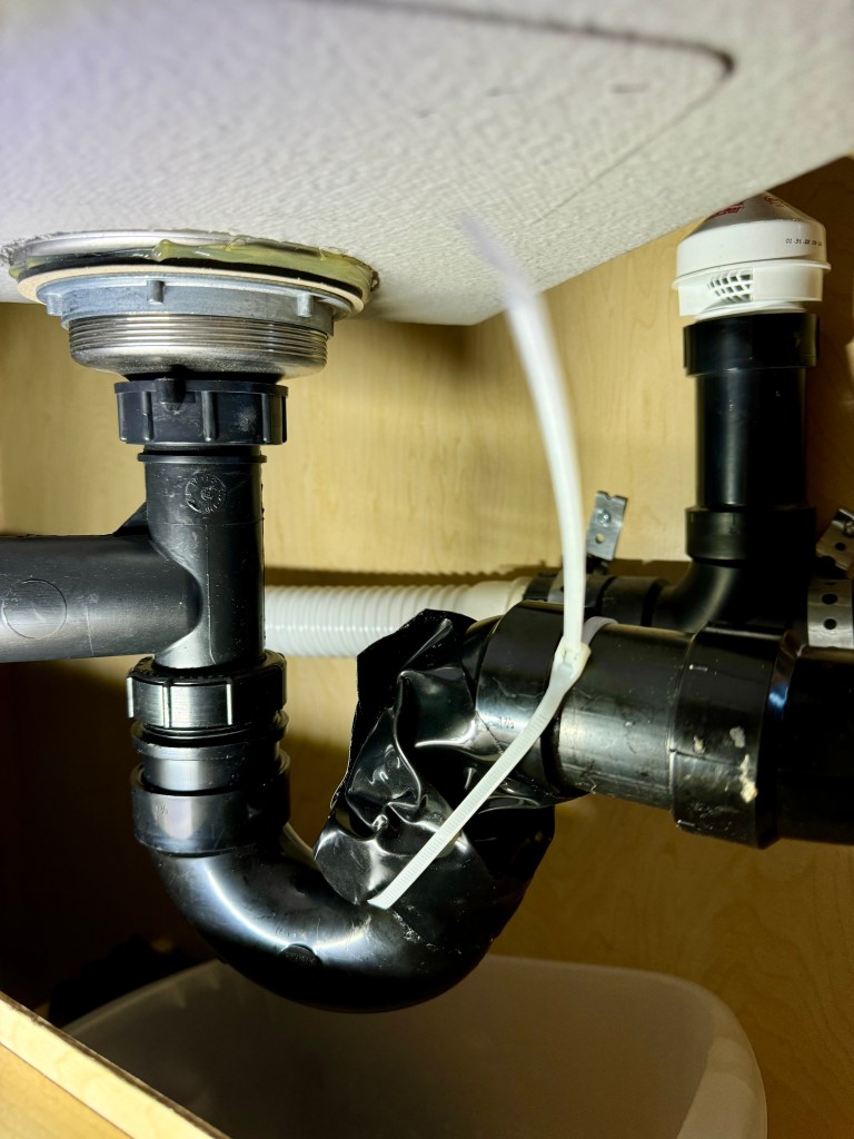 Shortly into the second year, the drain pipe under the sink separated at a joint. Unfortunately, the way it was constructed, you would need to replace most of the drain piping under the sink. However, using flex seal tape I was able to rejoin the piece and added extra tape to secure it well. I thought of it as a temporary fix, but it has worked so well I still haven’t replace it!