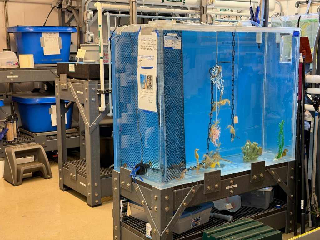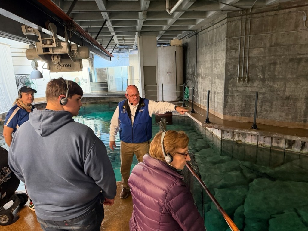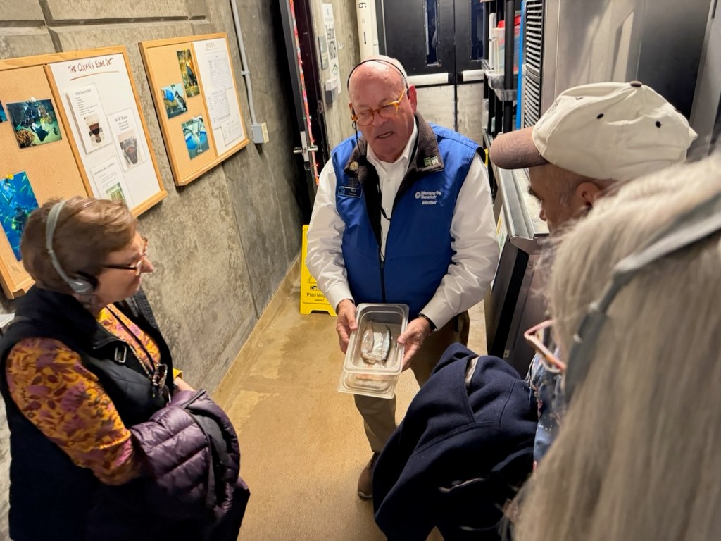 We also booked a guided backstage tour of the aquarium for the afternoon. We learned about how the aquarium operates. 70% of the people working there are volunteers! We saw how they feed the fish and otters. The “fish food” is restaurant quality and arrives by the truck load! The eight otters have voracious appetites and consume a quarter of their body weight in food daily! We also loved to see them growing sea horses and jelly fish backstage. The jelly fish have special circular aquariums to mimic the movement of the ocean.